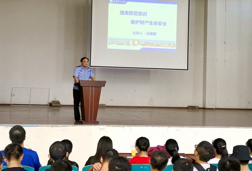 为提高新生的安全防范意识,培养良好的安全行为习惯,9月28日、30日中午,保卫处在云塘校区学生活动中心报告厅举办了两场2018级新生安全教育讲座。讲座邀请暮云派出所民警陈国军和保卫处伍接朝副处长对新生普及安全常识教育。化生学院、物电学院、材料学院全体新生和辅导员参加教育讲座。