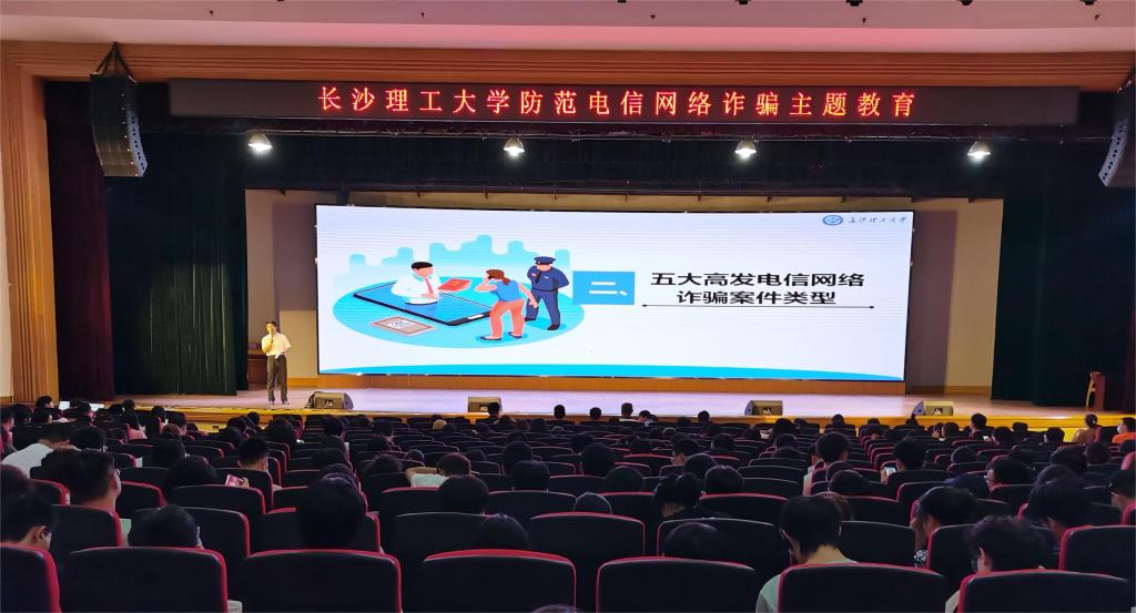 随后,城南学院辅导员王志鹏进行防范电信网络诈骗知识宣讲,他从什么是电信诈骗、五大高发电信网络诈骗案件类型、电信诈骗预防措施三个方面向在场师生普及反诈知识,并强调了下载国家反诈中心App的重要性。