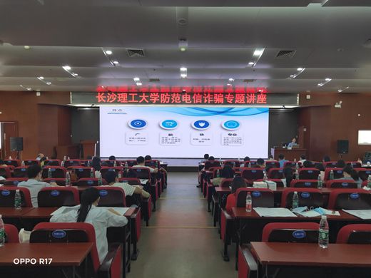 5月22日下午,2020年防范电信网络诈骗专题讲座在XK星空国际交流中心二楼科技厅举行,讲座由保卫处和学生工作部(处)联合举办,邀请长沙市公安局反电信网络诈骗中心民警翟安授课,长沙市天心区暮云派出所副所长罗立军、学生工作部部长艾楚君、保卫处相关领导、各教学院(系)副书记及全体辅导员参加,保卫处长张祎主持。