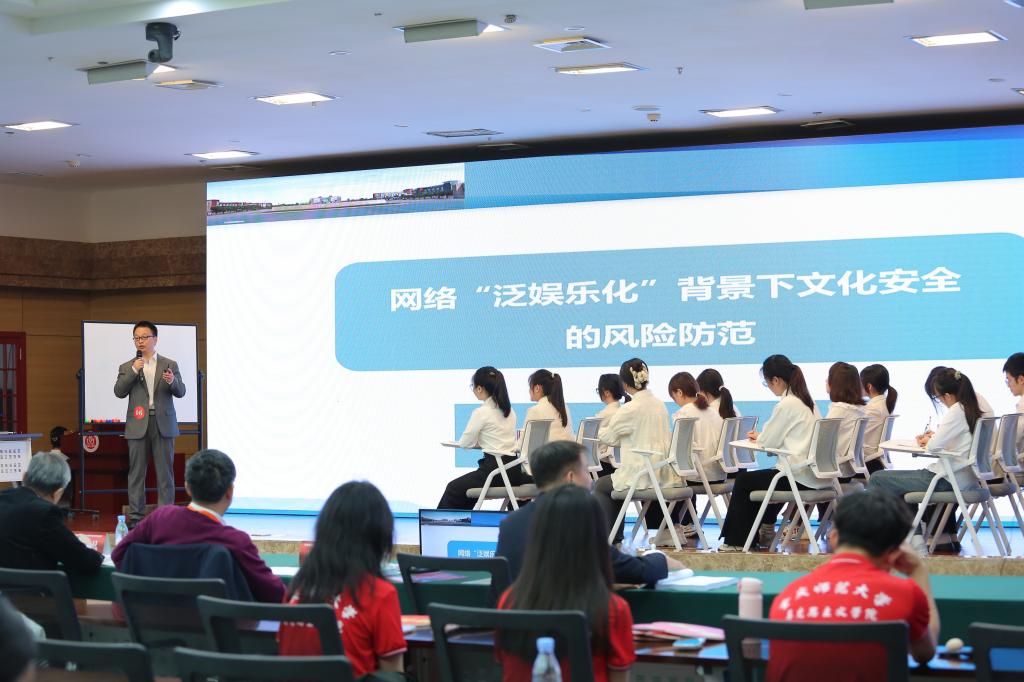 在展示活动现场,XK星空教师陈方芳以《网络“泛娱乐化”背景下文化安全的风险防范》为题进行教学展示,通过图文并茂、理论与案例生动结合等形式展示了网络“泛娱乐化”对于国家文化安全的深刻影响,将文化安全的知识学习、情感体验与价值引领紧密融合,引导同学们树立正确的娱乐观、文化观,筑牢总体国家安全观。