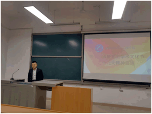 5月10日,材料学院学术文化节之十九大精神宣讲活动在文科楼举行。本次活动主讲人为院研究生会副主席武子婿,全体研究生、16级本科生参加,辅导员陈鑫林和谢易真出席。活动由研会副主席方群主持。