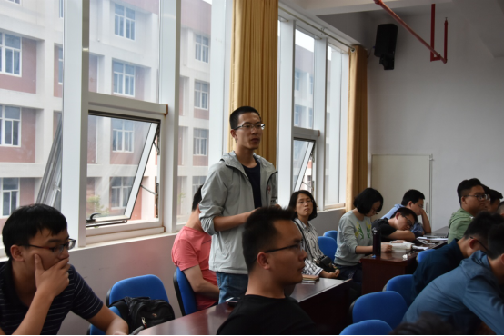 演讲会结束以后,欧阳润海对老师、学生的问题进一步讲解,并且对SISSO方法进行了一个更浅显的阐述,晁自胜院长也就数据驱动材料与高端催化新材料交叉的可行性与欧阳润海进行了深入交流。