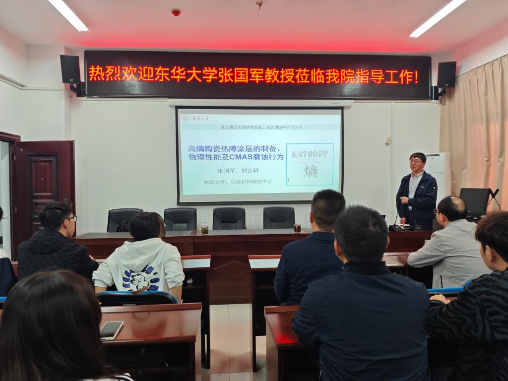 2024年11月1日上午,东华大学教授、博导张国军应邀在新能源大楼1A-908开展学术报告,材料学院部分师生参加,院长毛卫国主持会议。