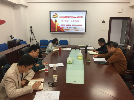 5月24日上午9:00,材料学院在新能源大楼1-317举行了党总支中心组“学史崇德”专题学习研讨,会议由院党总支书记张国强主持,学院领导班子参加了会议。