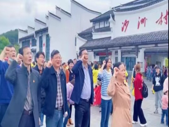 随后,在半条被子展览馆前,全体党员庄严宣誓,重温了入党誓词;在徐解秀老人故居,大家重温了习近平总书记在纪念红军长征胜利80周年大会上讲述“半条被子”故事的视频讲话,通过珍贵文物史料回顾毛泽东、朱德等老一辈革命家早期领导工农革命运动以及红军长征过境汝城时的历史,同时详细了解三位女红军把仅有的一条被子剪下一半留给村民徐解秀的感人故事,每到一处,大家都会认真聆听解说员的讲解,通过一幅幅珍贵照片、一件件战斗遗物、一篇篇文字记载、一段段历史影片,近距离感受了革命先烈为了人民幸福、为了民族解放忠贞不屈、舍生忘死的崇高革命精神和伟大爱国情怀,感受了我们党同人民风雨同舟、生死与共,与人民同呼吸、共命运、心连心,把人民放在心中最高位置的伟大历史。