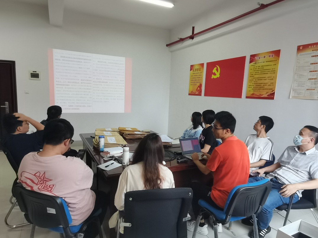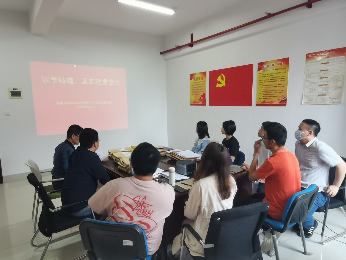 2023年5月9日下午,新能源材料与器件系教工党支部在新能源大楼1栋305召开“以学铸魂,坚定理想信念”主题党日学习活动。党支部书记秦伟主持学习,支部党员参加学习活动。
