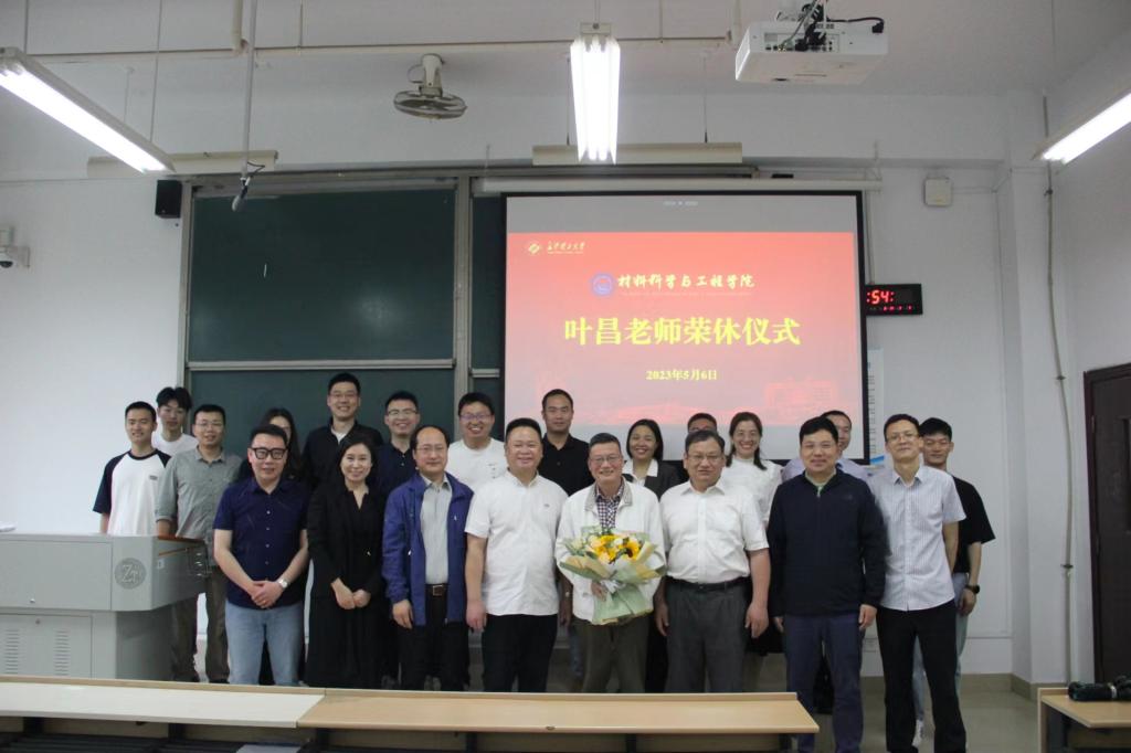 “最后一课”为叶老师的教育事业画上了圆满的句号,随后,材料学院党总支书记唐超文、院长毛卫国、副书记陈华及青年教师代表、学生代表为叶昌老师举行荣休仪式。材料学院院长毛卫国致欢送词。他对叶昌爱岗敬业、默默耕耘、不图名利、不记得失、给予了充分的肯定,代表学院表达了对叶昌的感谢,希望叶昌一如既往地关心支持学校的发展,衷心祝福叶昌拥有一个退而不休、幸福快乐的晚年生活!