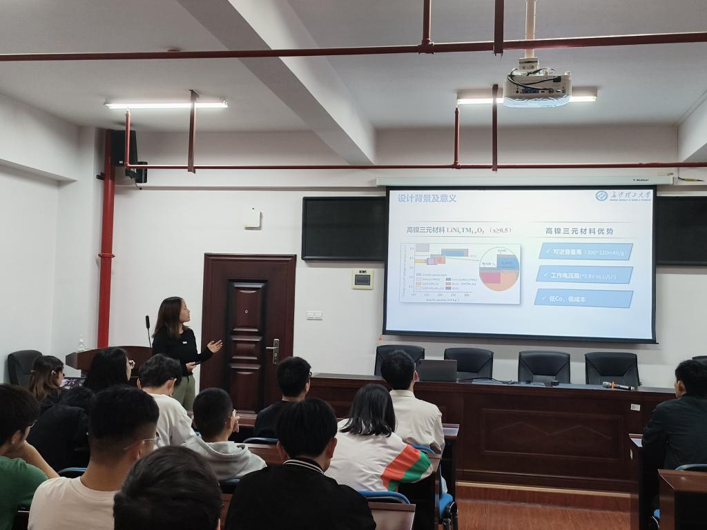 在本次比赛中,陈鹏从研究方向、科研学习建议和专业优势三个方面进行分享,介绍了锂离子电池的原理、优势、存在的关键问题及解决方式,分享了科研学习中实用的建议和好用的科研软件,分析了材料专业升学优势和就业优势,加强了同学们对未来发展的信心。高善强结合自身经验分享了对材料的认识、科研经历及材料的意义,分享了在经历研究生系统学习后对材料认识的转变,介绍了超级电容器相关知识、如何用专业知识协助完成“碳达峰”“碳中和”目标。付立芝以论文为基础,探究了掺杂与浸渍包覆同步修饰的制备工艺,结合材料形貌、电化学性能、循环后结构与表面组分分析,详细介绍了双重修饰对高镍正极材料的影响和机制研究。何张龙的分享分为研究方向、活动经历及科研心得三个方面,鼓励同学们在科研的同时,也要多与外界交流,积极参与活动、竞赛,开拓视野,提升自身能力。钟文升认为在研究生学习中,懂得转变心态、踏实做事也很重要。要做好论文精读,不要有畏难情绪,并要随时记录自己的想法。分享结束后,同学们扫描二维码投票,王志亮老师和谭方林老师就参赛选手的宣讲进行了详细的点评。投票统计结果为:陈鹏获竞赛一等奖,何张龙、钟文升获竞赛二等奖,付立芝、高善强获竞赛三等奖。