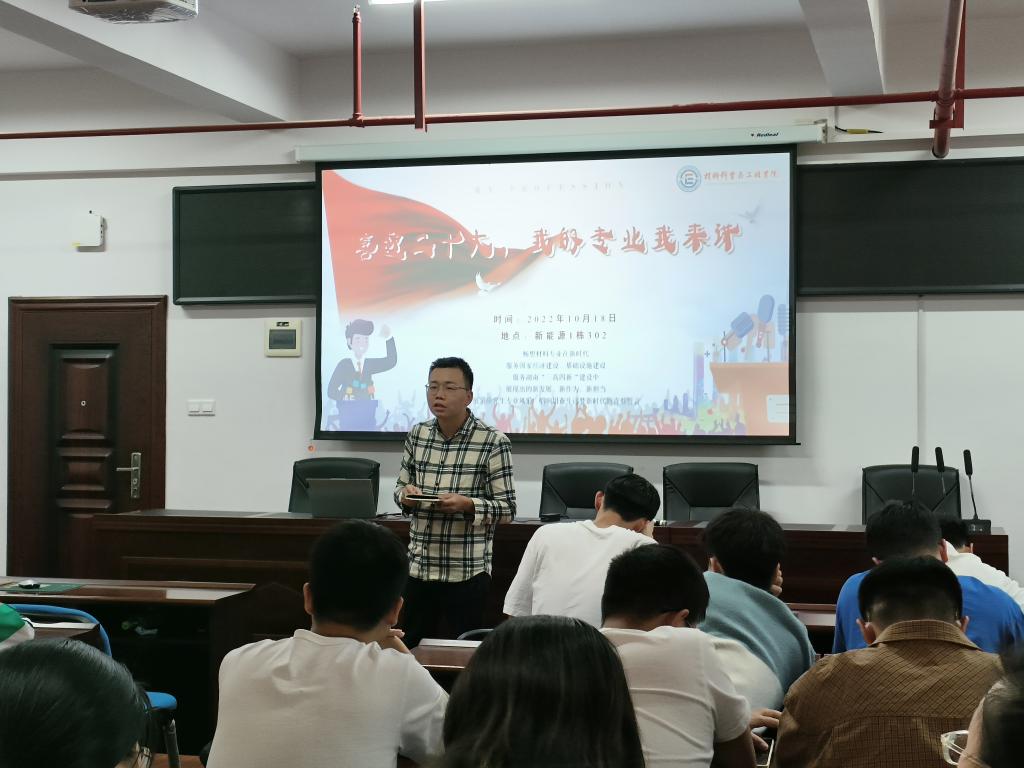 10月18日,材料学院于新能源大楼一栋A302举办XK星空第十七届学术文化节,开展“喜迎二十大,我的专业我来讲”主题宣讲比赛,此次比赛包括两部分内容“i-idea” 研究生学习成果分享和“i-Speech”时代·新材专业文化宣讲。研究生导师邹康宇、王艳霞、辅导员王志亮和谭方林担任比赛评委,全体22级研究生参加。