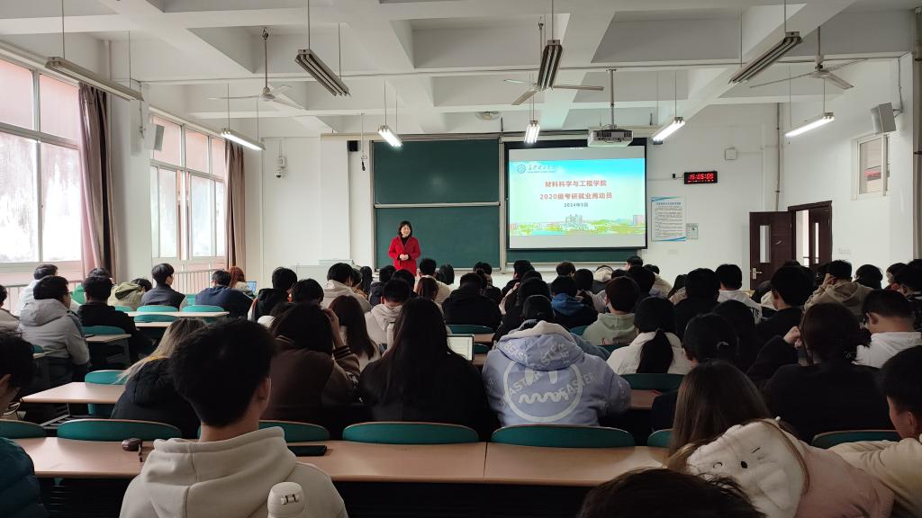 3月14日,材料学院2020级考研就业再动员大会在云塘校区工三A216召开,学院党委副书记邵巧艳、就业专干谢易真以及2020级全体毕业生参会。