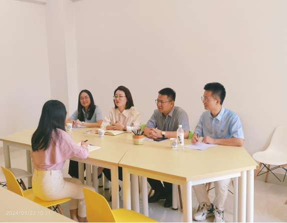 学院就业专干谢易真、本科生代表刘思宇与福耀汽玻集团苏州汽车玻璃副总经理周伟伟一行在新能源一号楼802室进行面对面交流。在双方沟通交流中,福耀集团林梅芬详细介绍了企业的发展前景、岗位招聘需求、薪资福利待遇及人才培养计划,并深度了解了材料学院学子的组织架构和就业需求等信息,并达成实习实践协议,为后续不断输送人才奠定坚实基础。