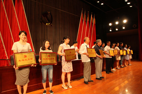 会上,陈慧、张卫明、潘正斌、郭海洋等4位2016年湖南省百佳大学生党员,交通运输工程学院党委等4个校级先进基层党组织,交通运输工程学院工程管理系党支部等41个校级先进党支部,唐平英等20位校级优秀党支部书记,谢琼等23位校级优秀党务工作者,吴振华等10位校级优秀共产党员标兵,乔法光等57位校级优秀共产党员受到表彰。在主席台就座的校领导为所有获得表彰的先进集体和优秀个人颁发了奖牌和证书。