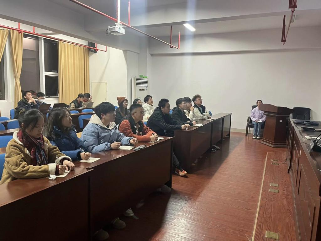 12月12日19时,材料科学与工程学院学生党支部于云塘校区新能源一号楼302室举办第二十九期悦学坛活动。本次悦学坛活动主题为“青春践行二十大——礼赞新时代,奋进新征程”,活动形式为主题视频分享。本次悦学坛由预备党员黄慧群主持,共17名入党积极分子参与。