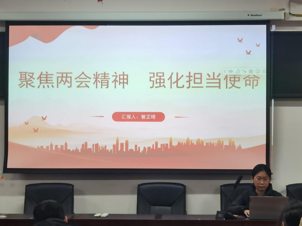 活动开始,党员代表曾芷晴同志讲授了以《聚焦两会精神,强化担当使命》为题的微党课,带领支部全体党员同志学习了全国“两会”精神、发展新质生产力以及关注民生热点问题。