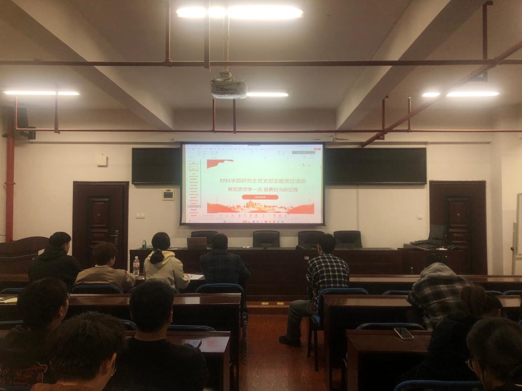 3月21日,材料科学与工程学院研究生党支部于新能源大楼一栋302开展“解放思想争一流,奋勇担当新征程”主题党日活动,本次活动由支部副书记邓雨凤同志主持。