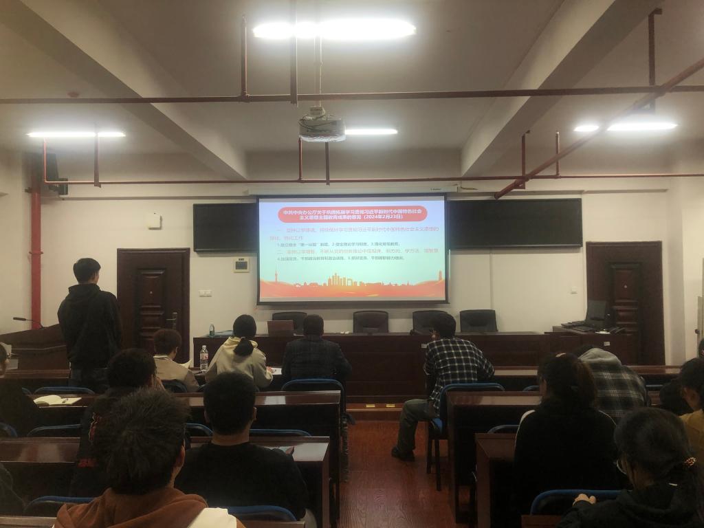 活动开始,党支部副书记邓雨凤同志给支部党员们上微党课,带领支部共同学习了习近平总书记在中共中央政治局第十一次集体学习时的重要讲话精神、中共中央办公厅《关于巩固拓展学习贯彻习近平新时代中国特色社会主义思想主题教育成果的意见》、《党史学习教育工作条例》和《中共湖南省委关于在全省开展解放思想大讨论活动的通知》,学习了全国两会的新理论,并观看了红色教育片,最后支部书记王志亮老师进行了总结发言,强调党员同志们要深刻学习党的创新理论,并时刻谨记思想联系实际,将报国之情紧密融合进个人发展的征程中。