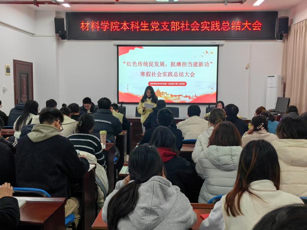 3月12日,材料科学与工程学院本科学生党支部于新能源一号楼908室举办了寒假社会实践总结分享会。会议以“红色传统促发展,挺膺担当建新功”为主题,通过实践成果展示与心得分享,全面总结寒假社会实践经验,激励学生党员传承红色基因,勇担时代使命。