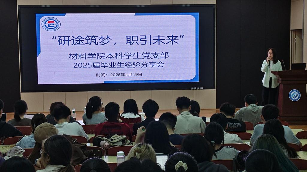 为深入贯彻落实“我为群众办实事”实践活动,切实解决学生在考研与就业中的实际困惑,材料学院本科学生党支部于2025年4月19日在云塘校区工科三号楼A201报告厅举办“研途筑梦,职引未来”考研就业经验分享会。活动邀请支部内优秀毕业生党员代表分享备考、求职经验,旨在通过朋辈引领助力学生明晰发展方向,提升核心竞争力。此次活动由党员邓伊美主持,支部全体党员和其他各年级本科生共百余人参加了本次活动。