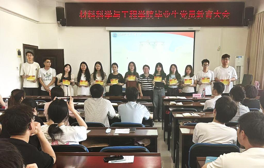 6月17日下午,材料科学与工程学院在新能源一栋九楼会议室召开2025届毕业生党员教育大会。院党委书记郑延恒、党委副书记邵巧艳、党建辅导员谭方林出席会议。学院46名毕业生党员参加活动,会议由党建辅导员谭方林主持。