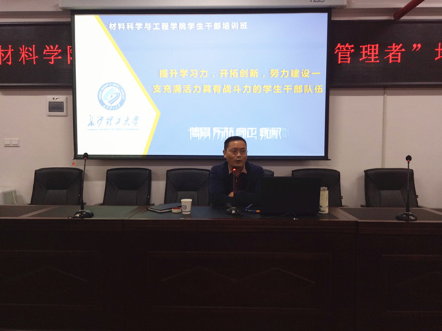 11月1日下午四点,材料学院第三期“卓越管理者”干部培训班在新能源大楼一栋302开课。主讲人为材料学院党委书记张国强,学生代表金帆主持本次培训班。