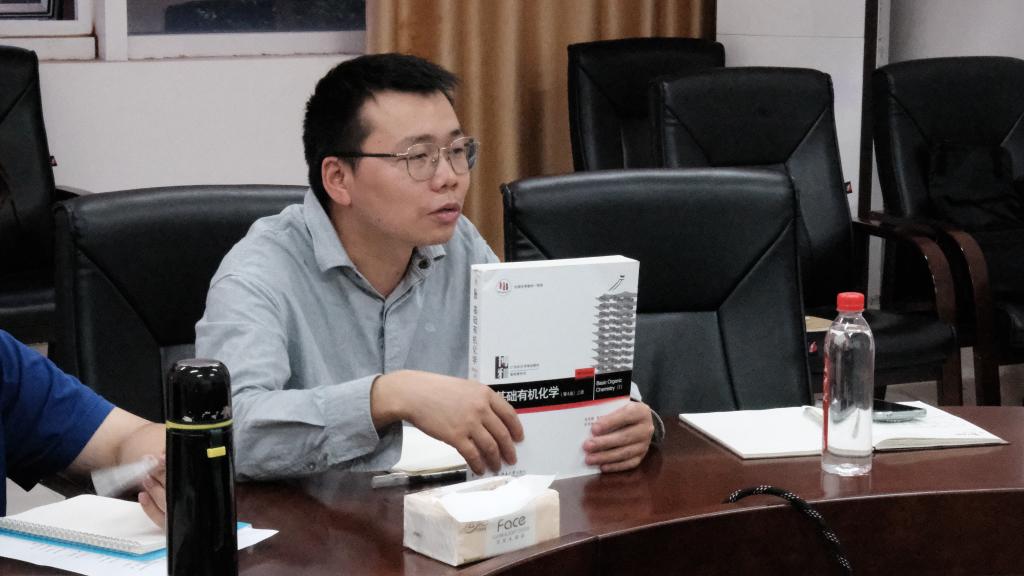 首先,杨静怡介绍了本次“部牍”分享会目的是营造良好的读书氛围,引导学生养成良好的阅读学习习惯。随后,谭方林老师作为领读老师,分享了《基础有机化学》一书,为同学们提供了宝贵的学术指导。接下来,张弘杰、王祥堃、马永健、戴兴涵、田开亮五位同学先后进行书籍分享。通过PPT分享和演讲,张弘杰着重介绍了《射雕英雄传》主要内容;王祥堃分享了《傲慢与偏见》的故事情节;马永健讲述了《月亮与六便士》对他的影响;戴永涵分享了《西南联大求学日记》中优美的语句与精彩的故事;田开亮分享了他在《被讨厌的勇气》一书中的收获。李心怡老师分享了她在《焦急下班——不焦虑打工指南》中学习到的方法。书籍分享完毕后,通过投票评选出此次分享会的“思悟分享者”——张弘杰、戴兴涵、田开亮。最后,李心怡进行总结发言,提倡大家多阅读,去了解书中的世界,感受知识的魅力。