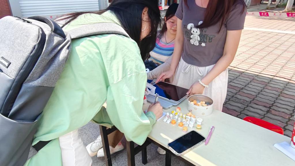 活动现场有序摆放着陶艺社团准备的首批参与置换的55件陶艺作品。同学们带来了各类置换物品,种类丰富,充满趣味。创意交换的案例比比皆是。一位同学兴奋地说:“这个面包狗是我用闲置的手链换到的,真的很可爱对不对?”在这里,每一次交换都像是一场独特的邂逅,充满了惊喜与趣味。