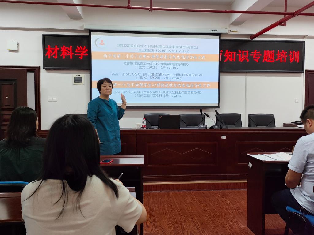 4月27日下午2点,材料科学与工程学院教职工心理健康教育知识专题培训会在新能源1号楼302举行,校心理健康教育中心龚勋主任主讲,学院全体教职工参加。