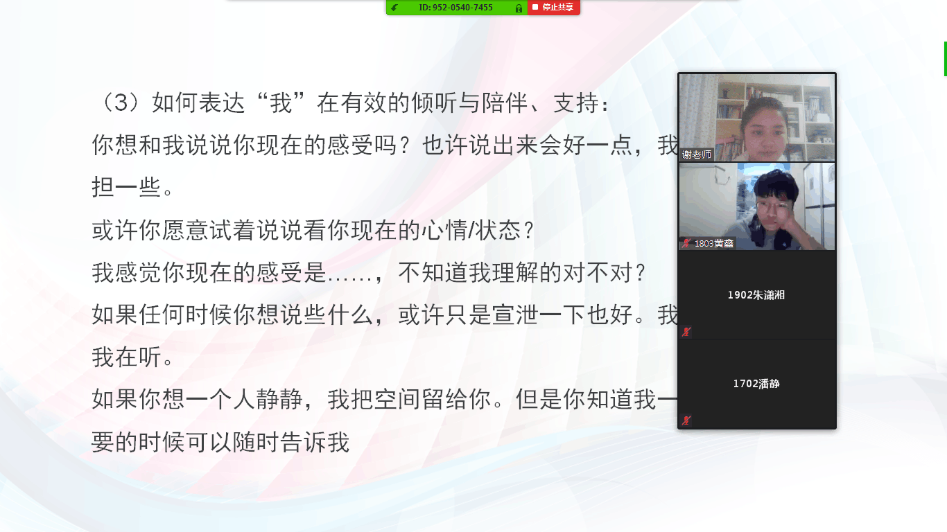 本次网络培训会强调了朋辈心理互助员在疫情期间工作的重要性,让朋辈心理互助员了解到在疫情期间如何开展工作,提高互助员们的责任意识和业务能力,朋辈心理互助员在疫情期间发挥作用,帮助同学们缓解情绪压力打下了良好的基础(图/谢易真 文/谢易真 审/唐青