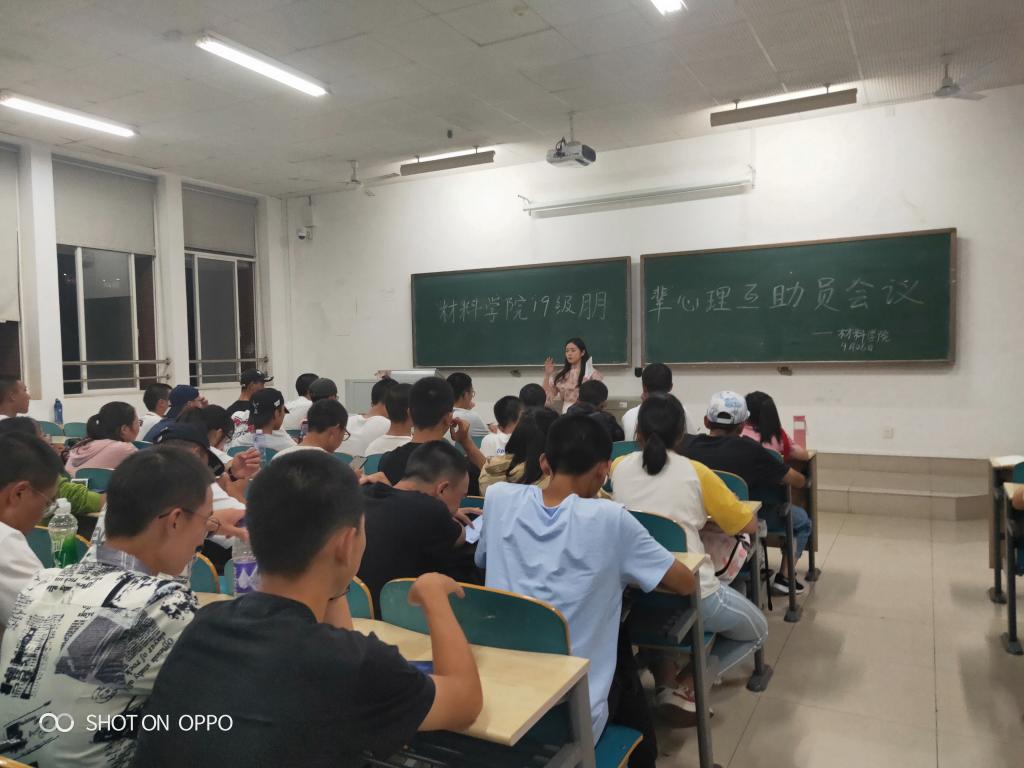 2019年9月26号晚,材料学院在综合教学楼A206召开了19级朋辈心理互助员会议。会议由学院心理辅导员谢易真主持,全体19级朋辈心理互助员及团学会心理部成员参会。