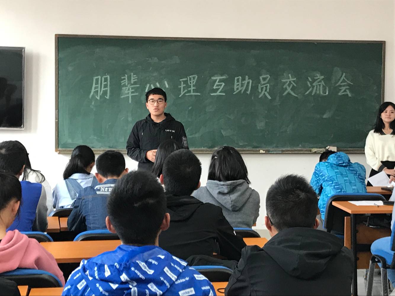 会上,谢老师明确了各位心理朋辈互助员的职责,并就大一到大四学生容易出现的心理问题做了简单的分析。对大一新生而言,问题容易出现新环境适应性问题,如人际关系不适应,学业压力等。大二学生容易出现懒散和懈怠状态,需要及时提点。到了大三,学生面临着考研或者就业的人生选择压力。接着,老师着重强调了要关注大四学生考研和就业的成功与否,并要及时在其失意时给予疏导安慰。