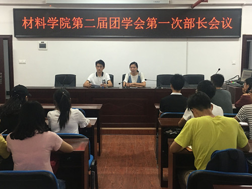 2017年9月6日,材料学院于新能源大楼302教室举行了第二届团学会学生干部骨干会议。学院党委副书记唐青,辅导员谢易真、陈鑫林老师以及团学会各部门部长、副部长参加了此次会议。