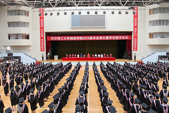 6月28日下午,城南学院在金盆岭校区体育馆隆重举行2018届毕业典礼暨学位授予仪式。城南学院董事长洪源渤,学校有关职能部门负责人、教学院代表、城南学院全体领导、教师及2018届毕业生参加典礼,典礼由院长赵华主持。