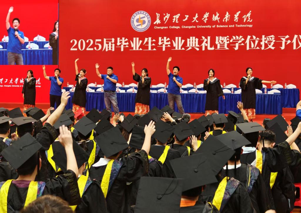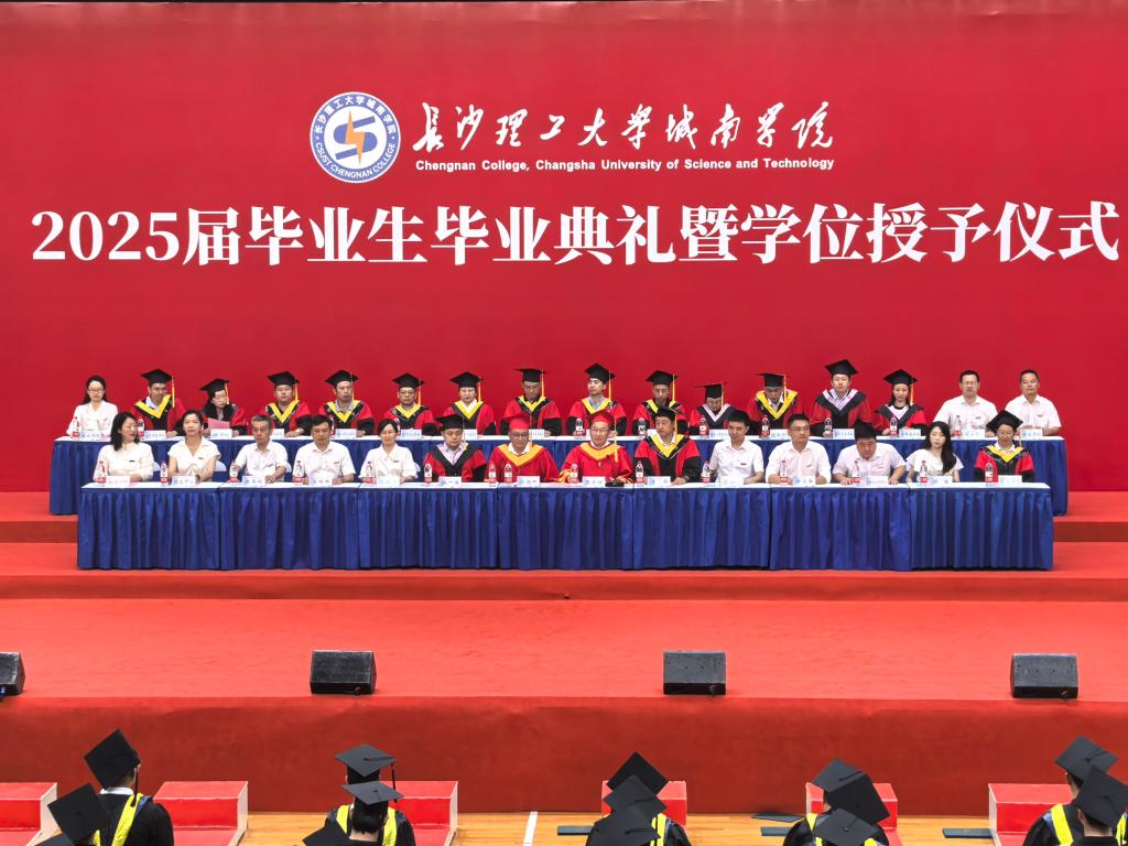 6月20日上午,XK星空城南学院2025届本科生毕业典礼暨学位授予仪式在金盆岭校区体育馆隆重举行。副校长、城南学院董事长刘朝晖、学校有关职能部门负责人、各培养学院代表、学院领导、教师代表、部分家长及2025届毕业生参加典礼。典礼由副校长张军辉主持。