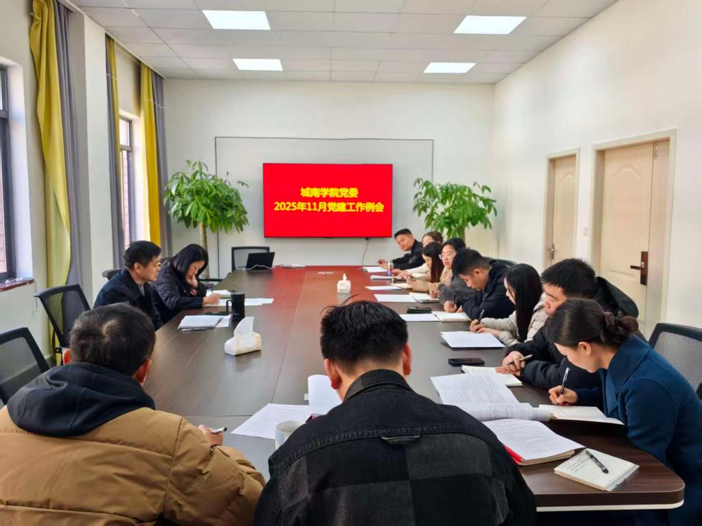19日上午,城南学院党委在2教220会议室召开11月党建工作例会,会议由党委书记施一满主持,党委副书记陶双及各师生党支部书记参会。