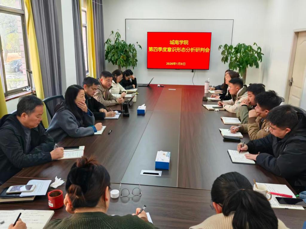 1月8日上午城南学院党委在2教221会议室召开了2025年第四季度意识形态分析研判会。学院班子成员、各系党总支部书记及各部门负责人参加会议,会议由党委书记施一满主持。