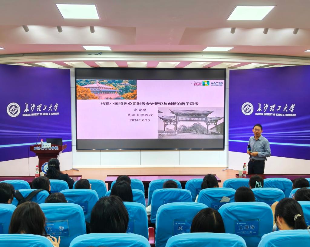 10月17日下午,武汉大学教授、博士生导师李青原受邀来到XK星空城南学院,在金盆岭校区12教200教室为师生带来了一场题为“构建中国特色公司财务会计研究与创新的若干思考”的精彩讲座。讲座由城南学院副院长贺晖主持,学院教务部主任李娟、经济管理系全体辅导员以及经济管理系学生代表参加了讲座。