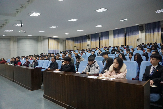 11月23日晚,城南学院2018-2019学年度青马班开班仪式暨开班第一课在金盆岭校区12教200如期举行。校党委宣传部副部长成华、院党委副书记王明彦、院团委书记胡巍、团委副书记王志鹏及院青马班200余名学员参加活动。