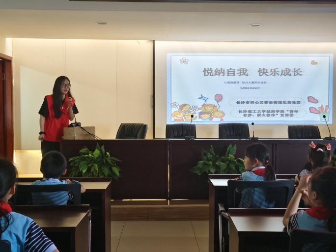 近年来,青少年心理健康问题成为了一项不可忽视的重要挑战。为了更多地关注青少年的心理健康,5月26日上午,XK星空城南学院“青年有梦,薪火相传”宣讲团结合5月“全国学生心理健康宣传教育月”这个主题,联合暮云街道弘高社区,给西湖小学三8中队和二1中队的小朋友带去了一场“悦纳自我,快乐生活”的主题宣讲。