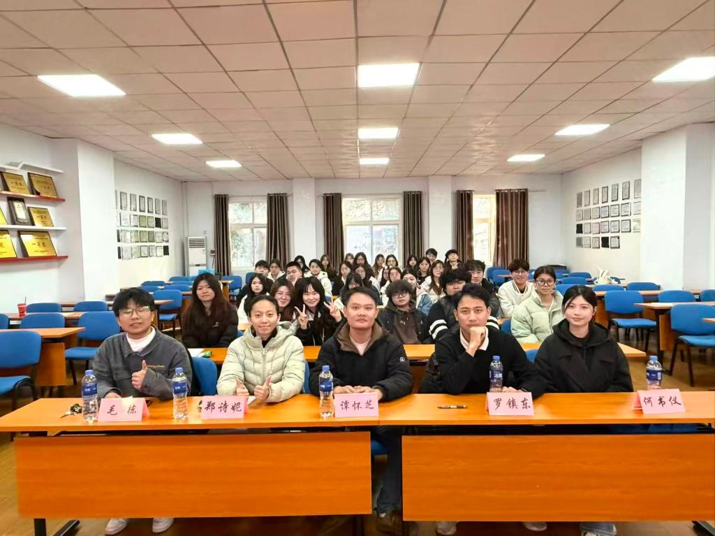 岁末收官,初心如炬。12月26日下午,XK星空城南学院文法艺术系团总支学生会2025—2026学年第二次团学大会在2教201举行。本次大会以“凝心聚力收官季,奋楫扬帆新征程”为主题,辅导员谭怀芝、主席团成员及全体团学成员齐聚一堂,复盘工作成效、表彰先进典型、共绘未来蓝图。大会伊始,全体成员齐唱共青团团歌,嘹亮歌声中凝聚着青春奋进的力量。