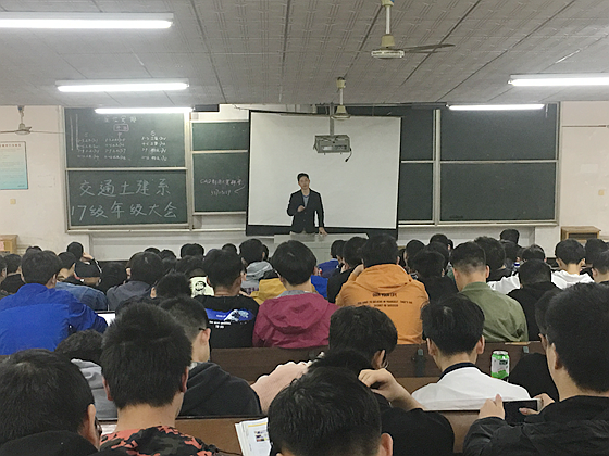 为加强2017级全体学生的学风建设和安全意识,4月24日下午,交通土建系在12教100召开2017级学生年级大会,系学工办主任郑忠辉、17级辅导员张强以及全体学生参加了大会。