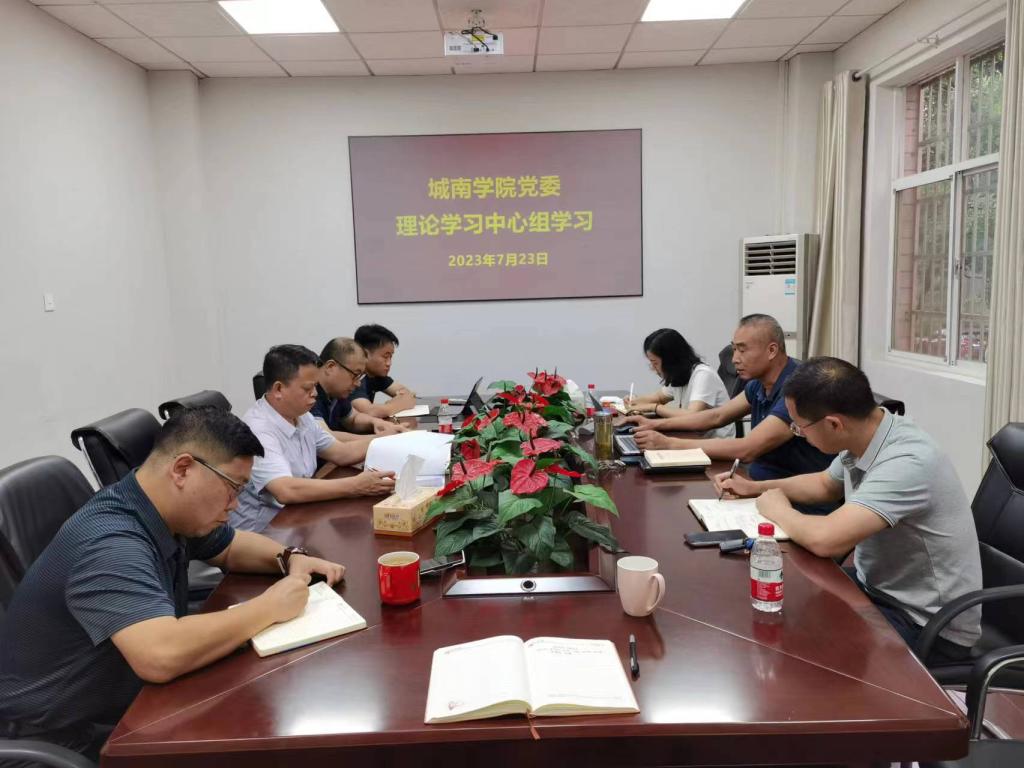 7月23日上午,城南学院党委理论学习中心组在金盆岭2教202会议室开展 “以学促干”专题学习。院党委书记李修春主持学习。