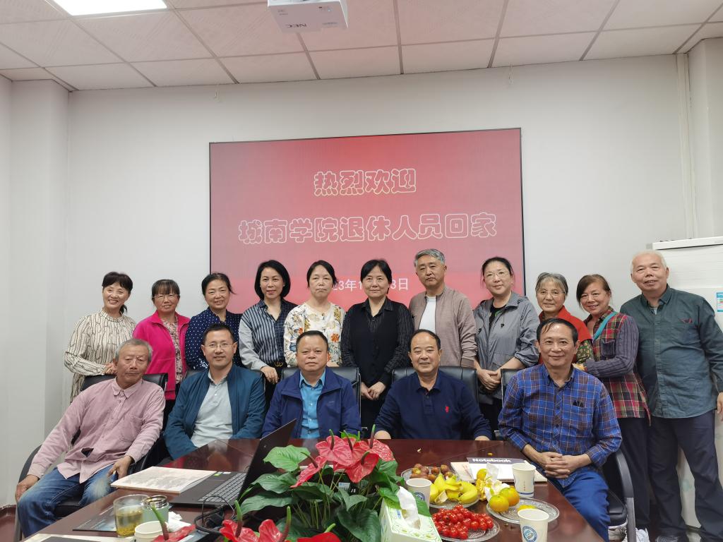 10月23日,城南学院召开退休教职工座谈会,热烈欢迎退休人员回家,院长赵华、副院长兼工会主席朱广峰以及院党务部、办公室工作人员及14名城南学院退休自助组人员参加座谈。