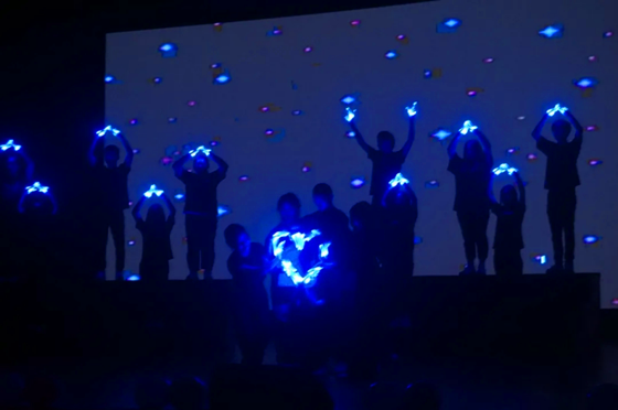 一玉口中国,一瓦顶成家,家是最小国,国是千万家……迟瑞、袁征与经管系学生会干部为我们带来了手影舞《国家》蓝色的精灵在黑夜中跳动,诉说着对国家深深的眷恋。