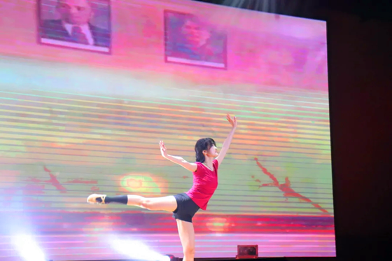 夜半三更盼天明,寒冬腊月盼春风,若要盼得红军来,岭上开遍映山红。王婧妍、石美、纪珂等同学表演的舞蹈《映山红》让观众身临其境。