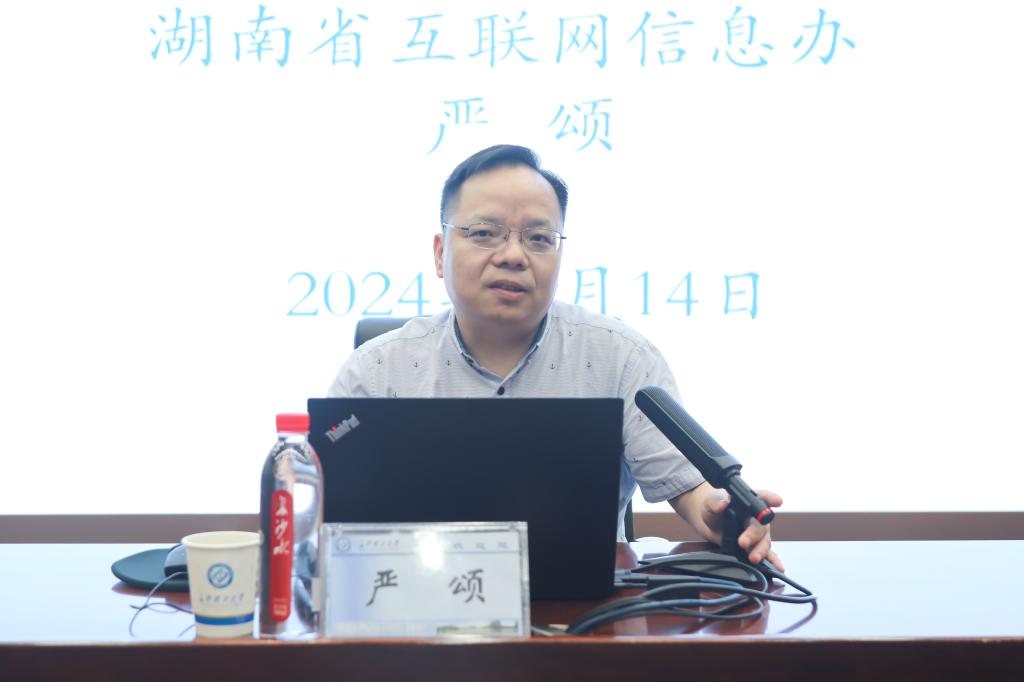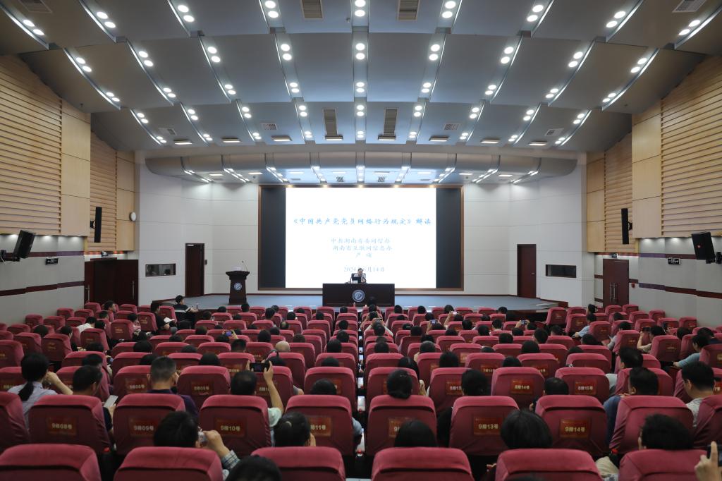 6月14日,XK星空在云塘校区图书馆报告厅组织新任职处级干部任职能力提升专题培训班、机关科级干部培训班第五场培训。中共湖南省委网信办网络执法与监督处处长严颂应邀作专题讲座。全体新任职处级干部和机关科级干部参加培训。培训由校党委委员、宣传部部长方琼主持。