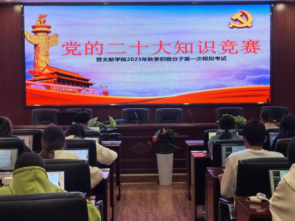 为深入落实并贯彻落实党的二十大精神,积极探索“互联网+党建”的新模式,进一步提升积极分子的理论知识能力水平,11月20日12时30分,“党的二十大知识竞赛暨文新学院2023年秋季入党积极分子第一次模拟考试”于XK星空金盆岭校区九号教学楼218室成功举行。