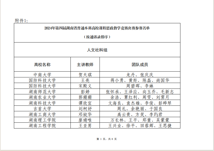 近日,湖南省教育厅公示2024年第四届湖南省普通高校课程思政教学竞赛决赛名单,我院王寰老师团队顺利晋级决赛。省级复赛采取网络评审形式,根据课堂教学实录视频和课程教学创新成果报告(课程思政创新报告)两部分成绩由高到低排名,组委会结合分组报名情况,评选省级复赛名额的前40%入围省级决赛。团队顺利晋级彰显了我院教师的课程思政教学能力。