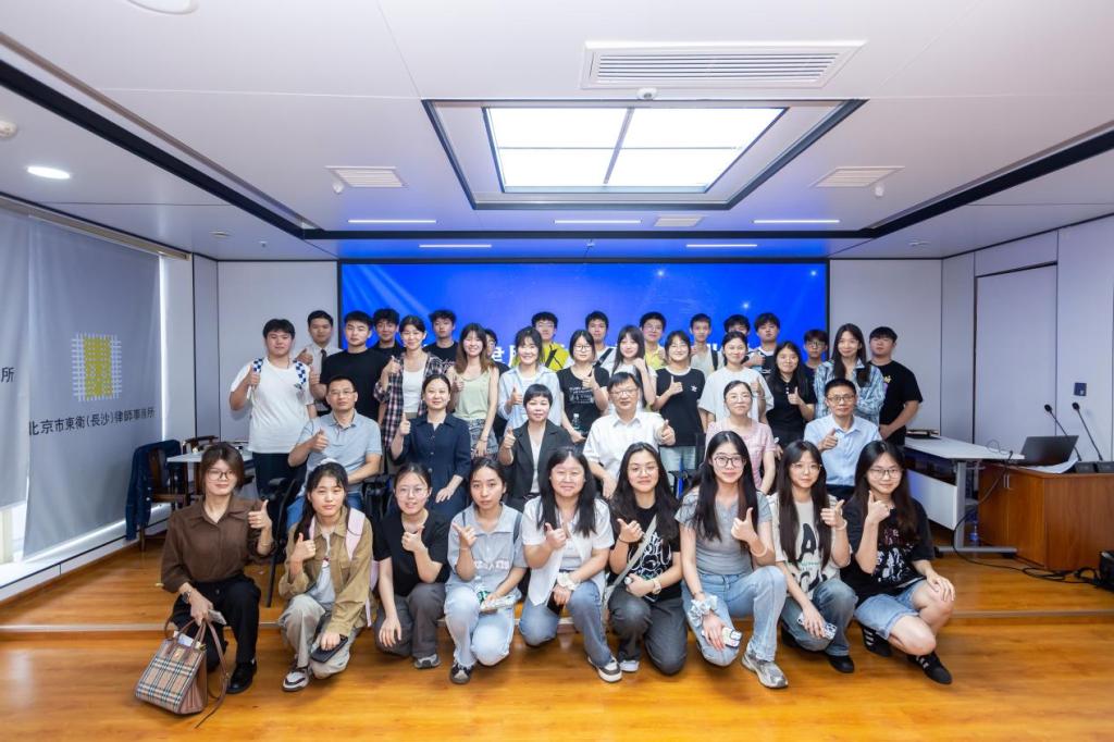 在律所会议室,律所合伙人对同学们的到来表示热烈欢迎。随后,资深律师们结合自身丰富的执业经验,为同学们带来了一场干货满满的分享会。他们从诉讼案件的办理流程讲起,详细介绍了如何进行案件分析、证据收集,以及在法庭辩论中的技巧与要点;同时,也分享了非诉业务的工作内容,如合同审查、企业合规等。同学们认真聆听,不时记录下关键要点,并就自己感兴趣的问题积极提问,现场互动氛围热烈。