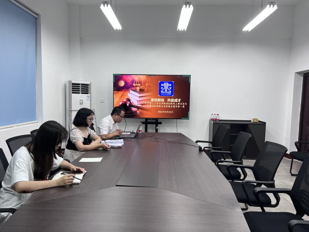 为加强家校联系,共同促进学生成长进步,2022年8月25日18:30,法学院召开2022级新生家长会暨家庭就业指导第一课,会议由院党总支副书记汪功伟主持,院长张敏纯、辅导员熊文娟、就业辅导员刘阳出席会议,全体22级新生及家长参加。