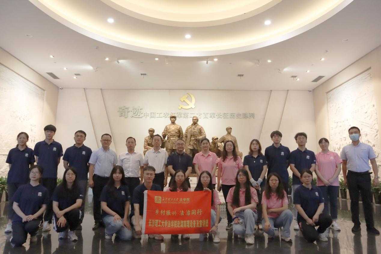 7月31日至8月1日,实践团先后参观贺龙纪念馆、贺龙故居、中国工农红军红二方面军长征出发地纪念馆以及贺龙刀劈芭茅溪盐税局旧址,并在长征出发地纪念馆开展自助讲解式党史学习教育。“红二方面军从桑植县刘家坪开始长征,纵横湖南、贵州、四川等8个省份,行程两万多里......”黎子航同学从红二方面军的长征路说起,结合自己的学习经历,号召广大青年学子坚定信仰,投身实践,誓做复兴栋梁、强国先锋。“虽然我们和先辈们身处不同的时代,有不同的青春选择,但不变的青年该有的模样,是对于所处时代应有的责任与担当!”